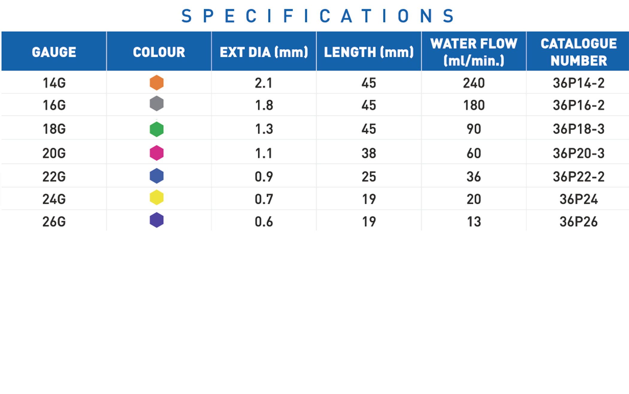 26G for Neonatal, 22G-24G for Child, 14G-20G for Adult.