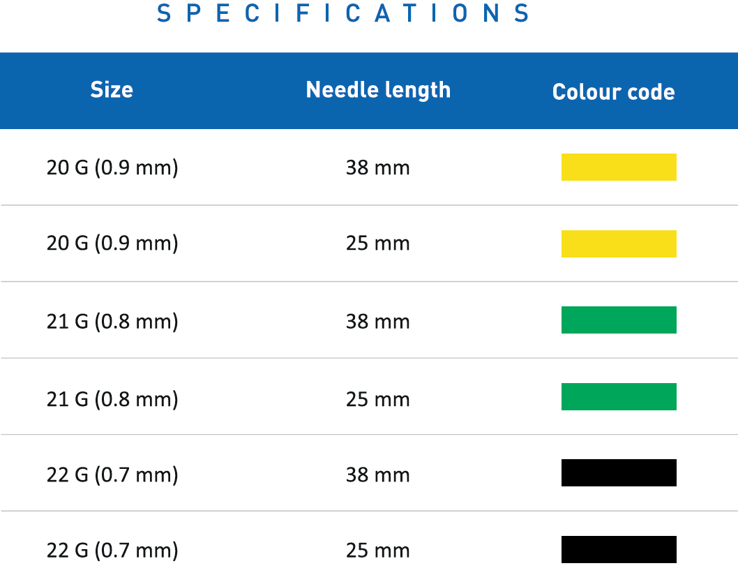 Leak proof needle: On removing blood collection tube from needle, the needle is covered and closed off with rubber shield